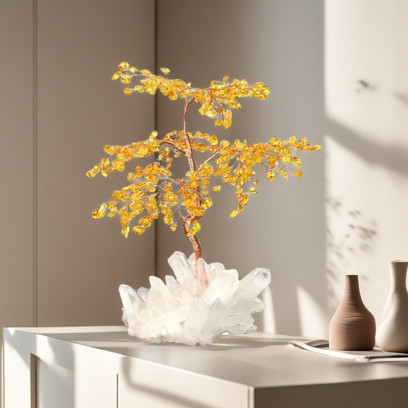This elegant gemstone tree is crafted with rich citrine crystal chips, each branch delicately twisted to reflect a canopy of golden light. Citrine, cherished for its associations with abundance, confidence, and clarity, brings a sense of optimism and warmth to any space. Its cheerful yellow hue symbolizes prosperity, creativity, and the joy of life.