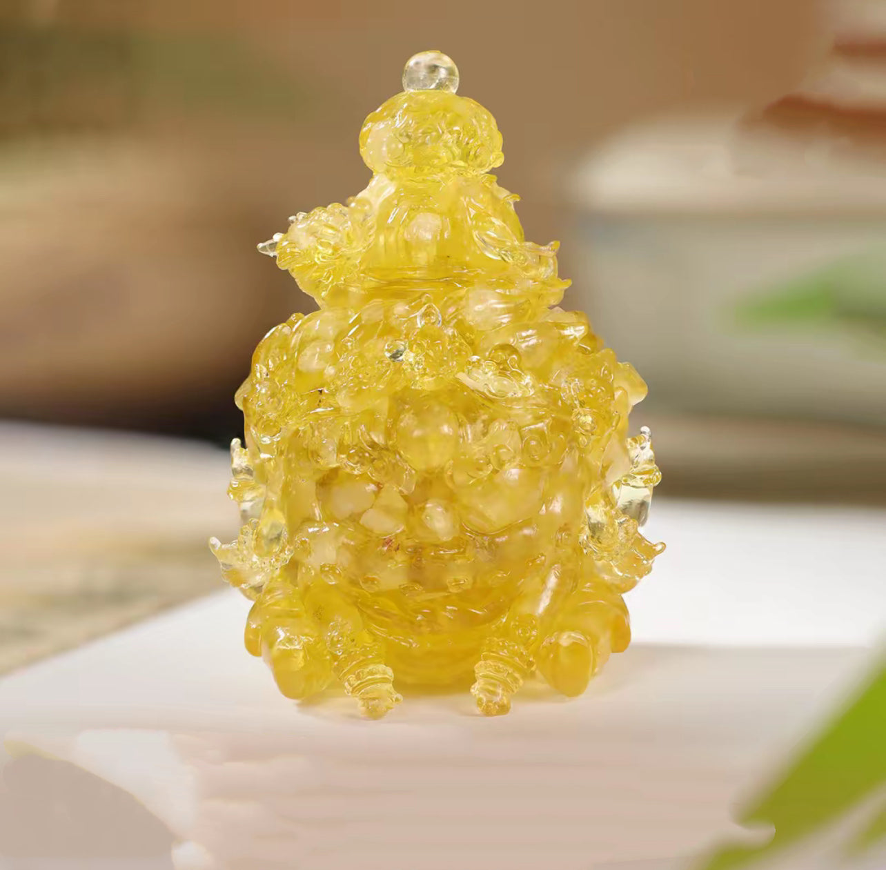 Embodying prosperity and protection, the Golden Blessings Pixiu is a masterfully carved yellow crystal figure symbolizing wealth, luck, and warding off misfortune. Known in Chinese mythology as a powerful guardian creature, Pixiu is revered for its ability to attract abundance while guarding its owner’s fortune. Handcrafted from radiant golden quartz or glasslike crystal, this figurine radiates warmth and auspicious energy, making it an ideal companion for your home, workspace, or altar. Place it facing your entrance to invite fortune in and keep negativity out — a perfect talisman for entrepreneurs, collectors, and Feng Shui enthusiasts alike.