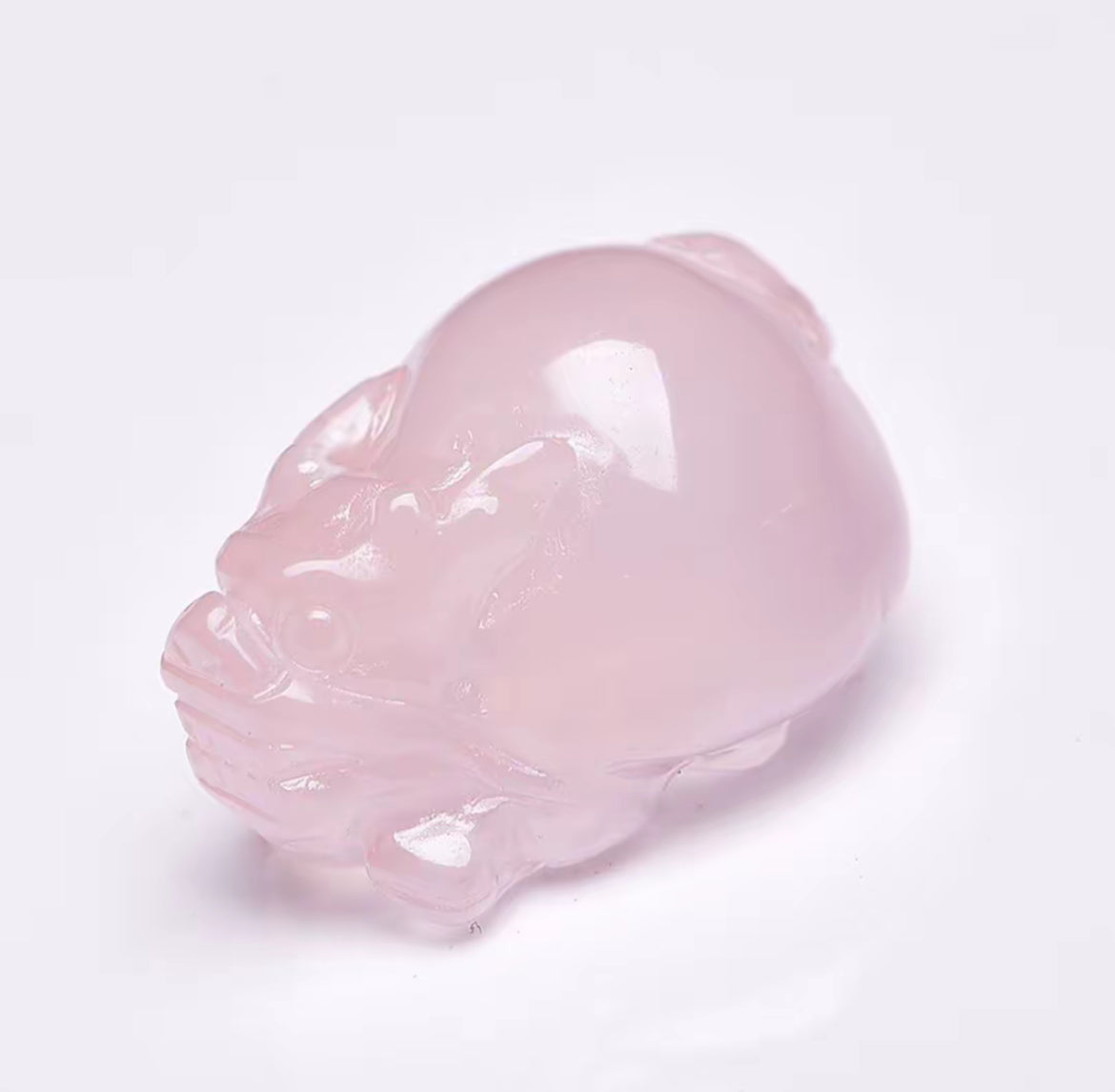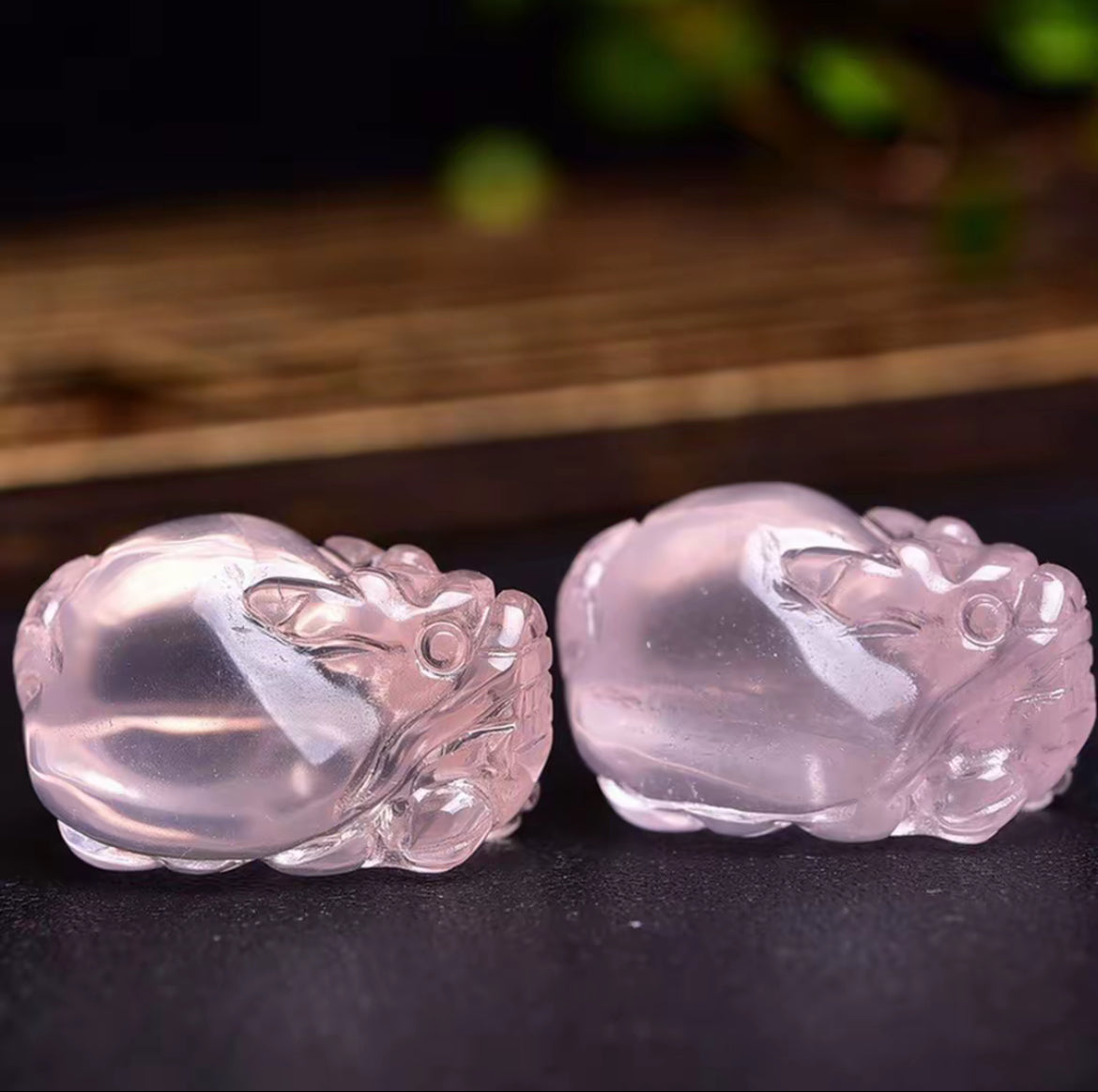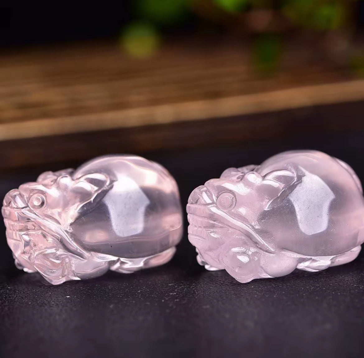 Carved from delicate rose quartz, these twin Pixiu guardians embody both love and protection. Believed to attract wealth while shielding the heart, they are perfect companions for those seeking emotional harmony and abundant blessings. Carry them close to guard your energy and invite gentle strength.