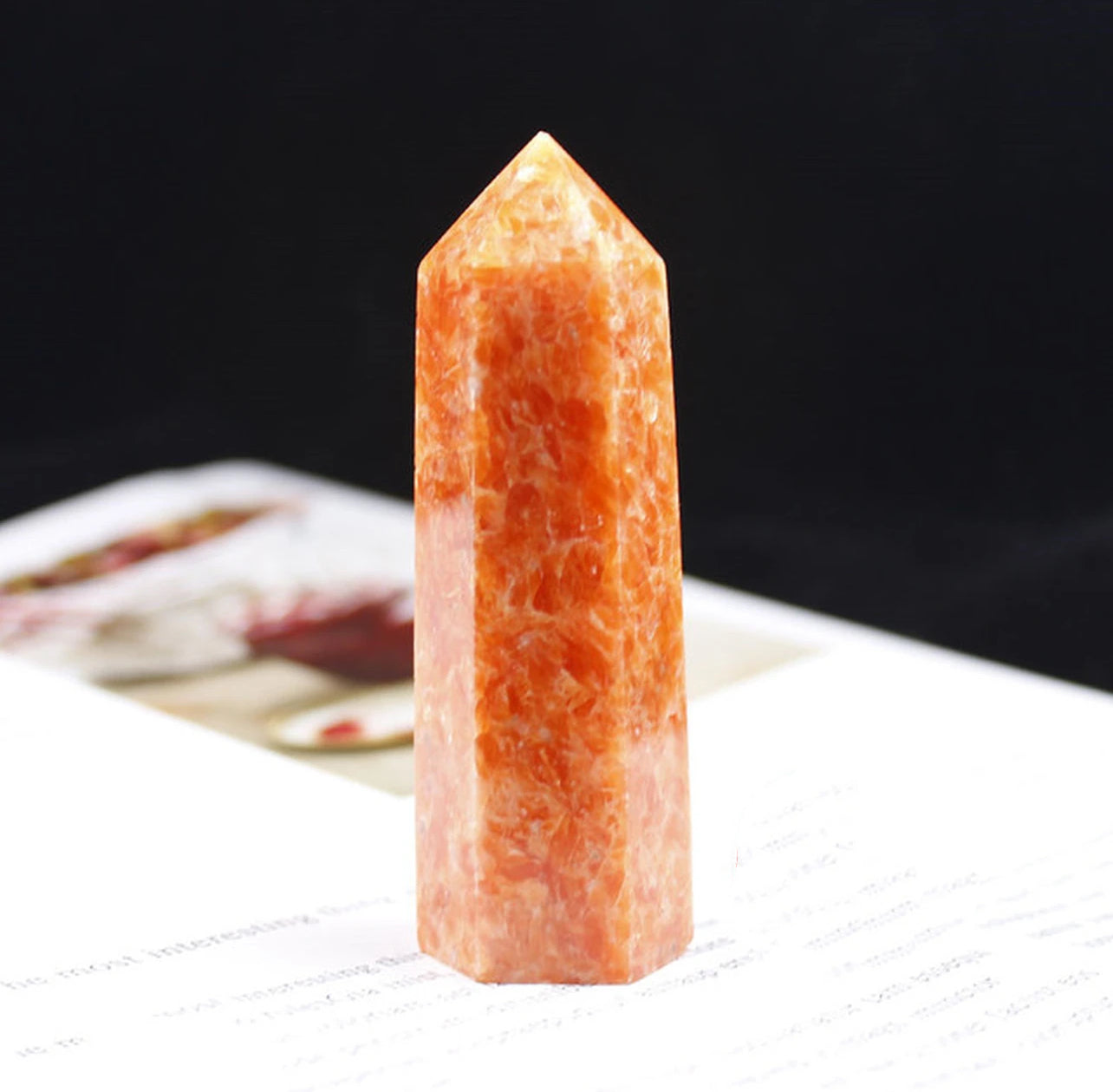 Infused with the fiery spirit of the sun, this radiant Sunstone tower—aptly named Solar Ember Tower—is a beacon of vitality, optimism, and fearless expression. Its warm, glowing tones ignite joy and dispel self-doubt, making it the perfect companion for those seeking personal empowerment and positivity. Often associated with the energy of leadership and independence, this crystal encourages bold action and uplifts your spirit with its golden, almost flame-like brilliance. Place it in your sacred space or carry it with you as a talisman of sunshine and strength. Let your confidence rise like the sun.