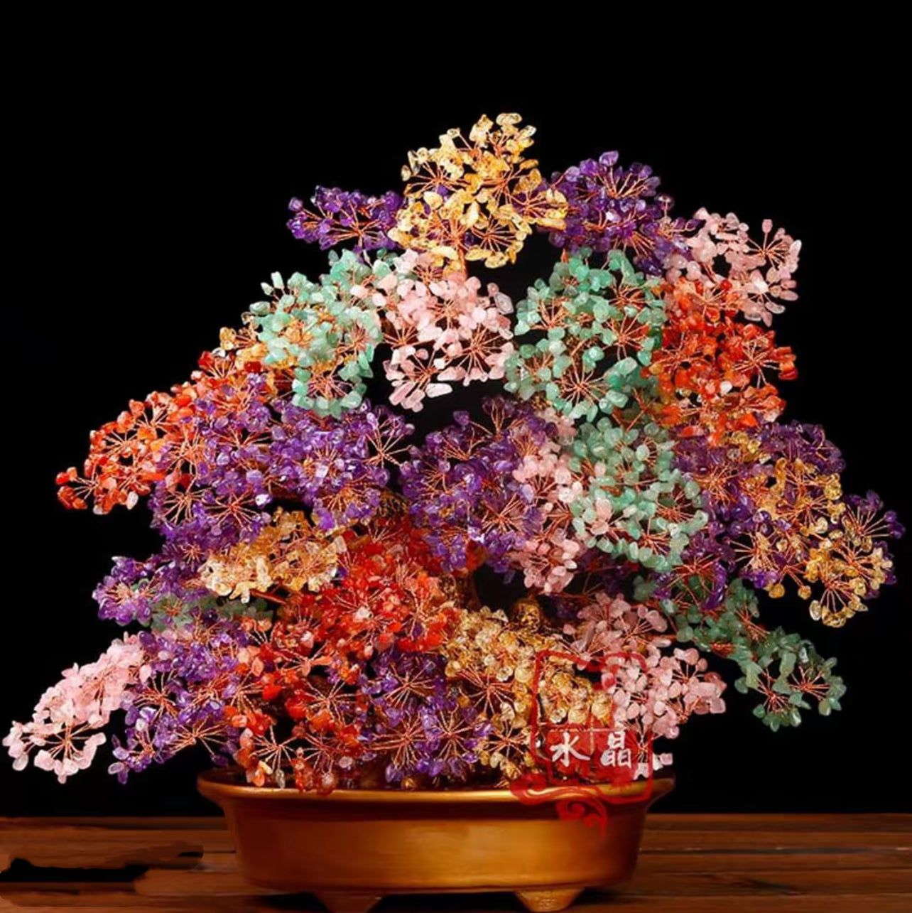This breathtaking gemstone bonsai, handcrafted with an exquisite mix of amethyst, aventurine, citrine, rose quartz, and carnelian chips, symbolizes balance, abundance, and serenity. Each wire-wrapped “blossom” radiates vibrant energy, making it not only a stunning decorative piece but also a powerful tool for Feng Shui harmony and manifestation. Ideal for home, office, or spiritual spaces, the Tree of Eternal Radiance brings color, healing, and intention into your environment. Let it stand as a beacon of joy and prosperity in your life.