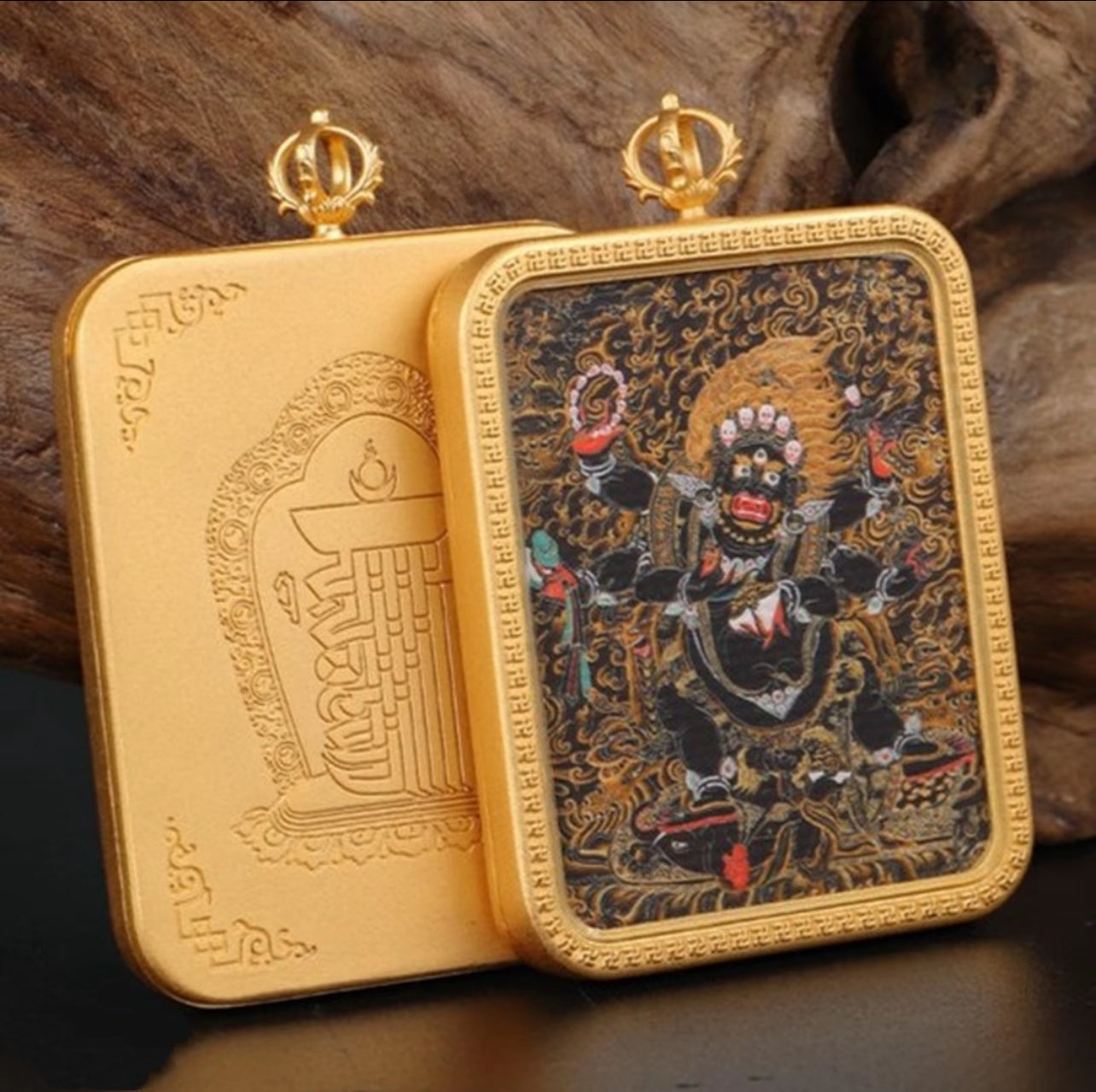 Hand-framed in a golden casing, this talisman carries the visual language of sacred Tibetan artistry — powerful, unapologetic, and deeply spiritual. Wearing this piece is a call for strength, clarity, and the courage to walk the path of truth.